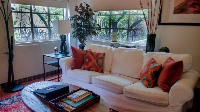 The house is over 100 years old with delightfully thick adobe walls. The two bedrooms, one bathroom, living area, and kitchen are generously furnished. The master bedroom has a king size latex & foam bed; the second bedroom has a single memory foam bed.